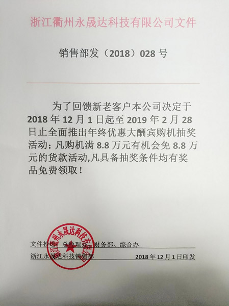 永晟達年終優(yōu)惠大酬賓抽獎活動,感恩回饋新老客戶!